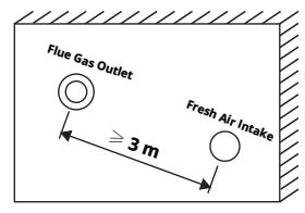 - The distance between the exhaust port and the fresh air outlet must comply with local standards or regulations.