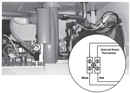 - Connect the two wires of the room temperature controller to the terminal blocks respectively.