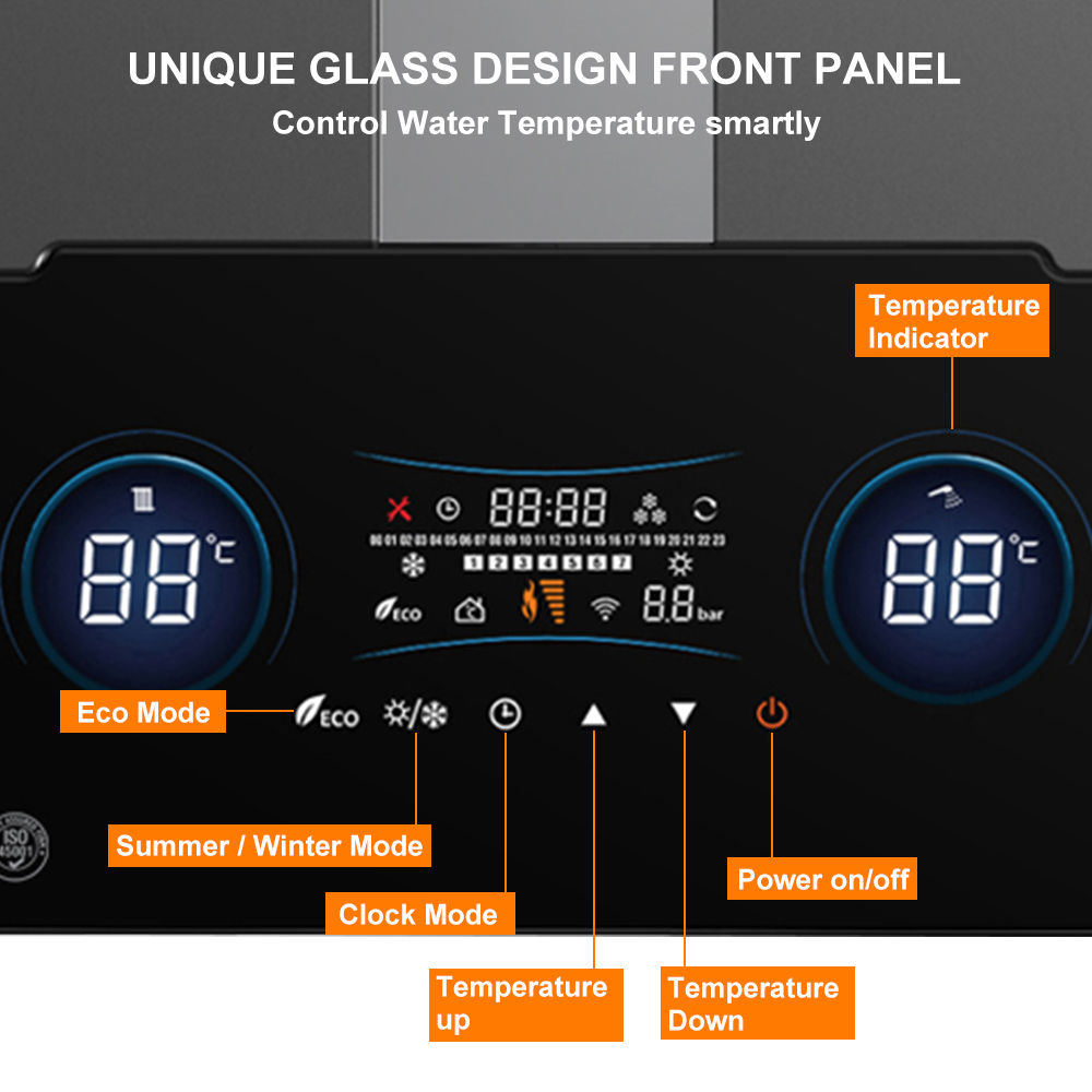 B 系列燃气壁挂炉采用智能分段燃烧技术与双换热器结构设计,在运行节能性与高效换热性能之间实现平衡。产品同时配备 ECO 节能模式、现代化大尺寸触控操作系统及 Wi-Fi 远程控制功能,兼顾便捷操作与能源利用效率。结合 ISO 认证的品质保障,为家庭提供高效、舒适且可靠的采暖与生活热水解决方案。